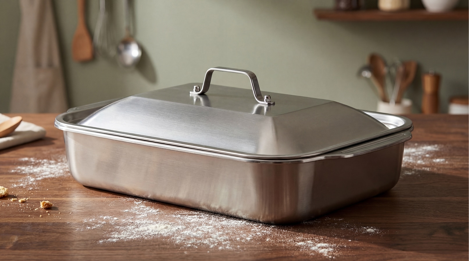 The brush surface finish facilitates effortless cleaning with the smooth roll edge design preventing hand injuries during washing. Being dishwasher safe (with hand-wash recommendation for lids) saves time, though some users report the brushed finish shows water spots more readily than mirror-polished alternatives. The multi-use versatility as a lasagna, brownie, casserole, or cake pan makes it a practical all-purpose addition to any kitchen.